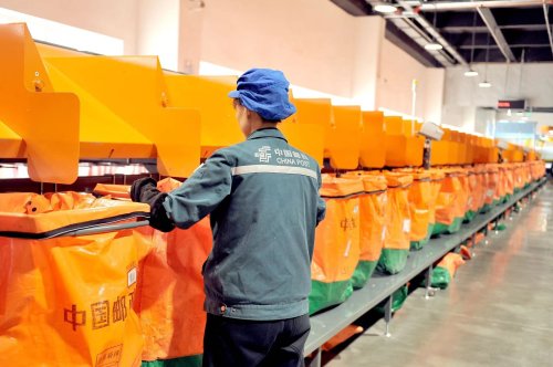 11月15日,在新建成的太原郵件處理中心內,地面干凈整潔,現場規范有序,一件件包裹在傳輸帶上快速運轉?!暗靡嬗谛峦度氲闹悄芑]件分揀設備,實現了全環節流水化、自動化、少人化,進一步提高了分揀效率、減少了生產人員、降低了處理成本?!敝袊]政集團有限公司太原郵區中心副總經理安志鋼說。