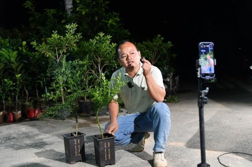 晚上7點半,采訪組到達位于武利鎮的欽州電商直播基地時,這里依舊非常熱鬧。“家人們,只要在直播間打‘苗木’兩個字,不僅買苗木有折扣,我們還會第一時間用郵政寄出去,又快又好。”鏡頭前,該基地負責人黃忠文正在打光燈下展示著新培育的苗木。