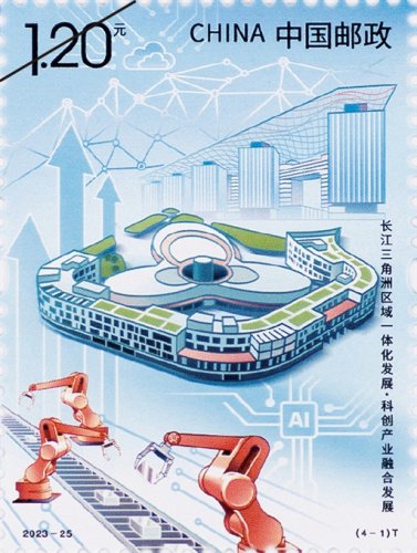 12月1日,中國(guó)郵政發(fā)行《長(zhǎng)江三角洲區(qū)域一體化發(fā)展》特種郵票一套4枚,郵票圖案名稱(chēng)分別為科創(chuàng)產(chǎn)業(yè)融合發(fā)展、生態(tài)環(huán)境共保聯(lián)治、公共服務(wù)便利共享和高水平協(xié)同開(kāi)放。