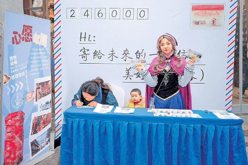 市民寫下“寄給未來(lái)的一封信”,期盼美好生活。 □王芬 攝