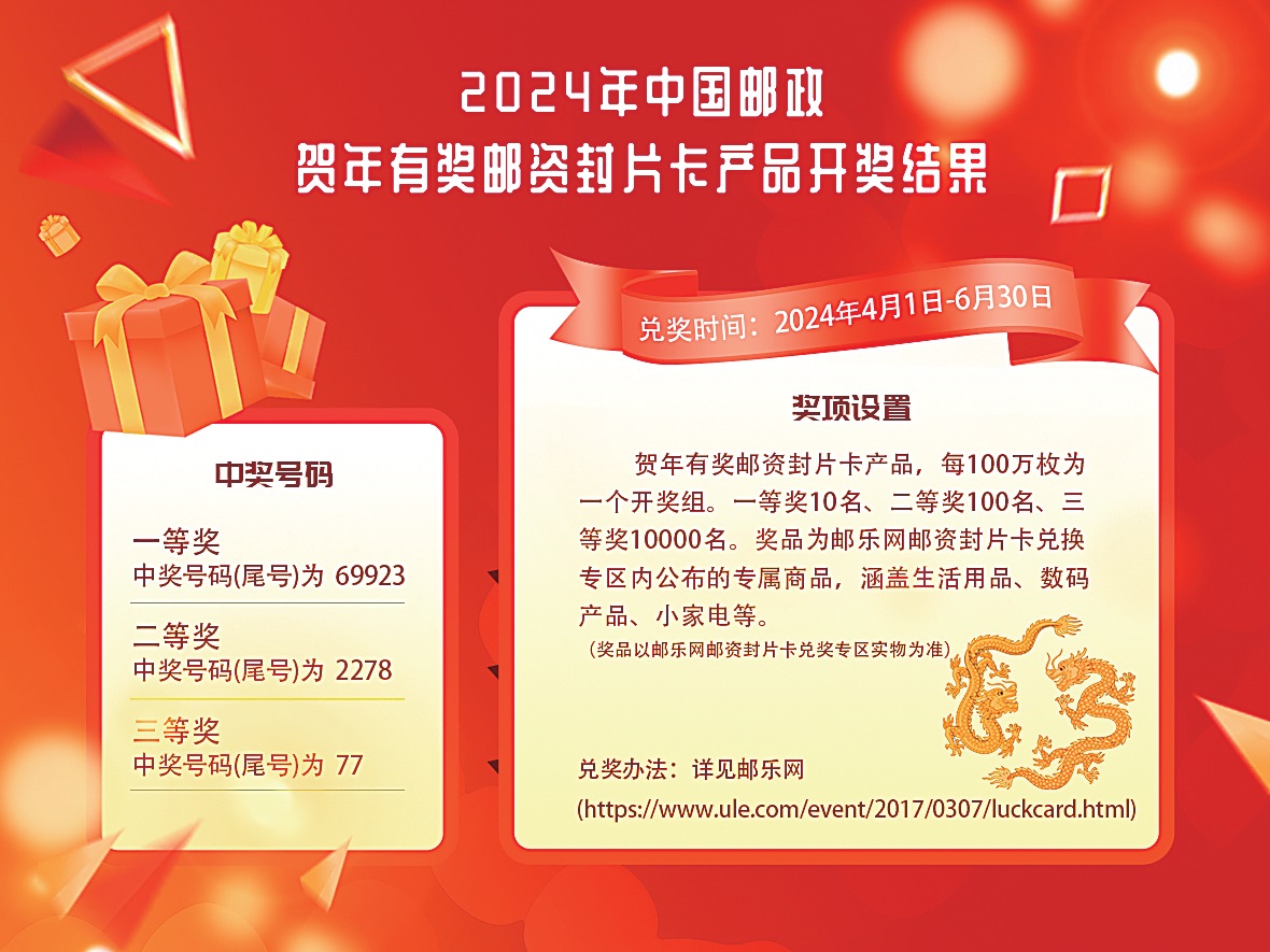 2024年中國郵政賀年有獎郵資封片卡產品開獎結果