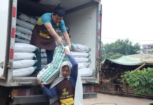 圖為貴港市郵政分公司工作人員搬運肥料。覃東新攝