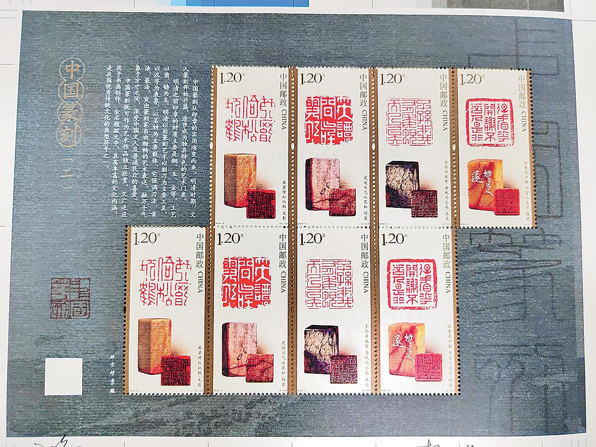 《中國篆刻(二)》特種郵票以獨特的印制工藝、特殊的油墨效果,加上細膩的宣紙質(zhì)地,讓集郵愛好者在觀賞郵票時,感受到鈐印過程中“紋理盡合,似蟬蟲脫蛻”的獨特質(zhì)感。