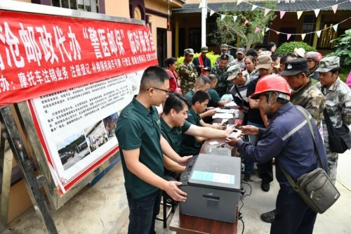 郵路通達抵邊村,便民服務也隨之深入抵邊村。2023年7月,瀾滄縣郵政分公司與當地交管部門聯合啟動“警醫郵保”項目,在抵邊村設置臨時服務點,為村民們現場辦理摩托車滅失注銷登記、保險繳納、車輛免檢、證照檢審等業務,獲得了村民們的熱烈歡迎和一致好評。