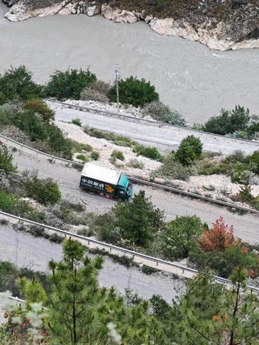 在洛扎縣郵政分公司裝車(chē)結(jié)束后,采訪組與投遞員頓珠一同前往拉郊鄉(xiāng)。
