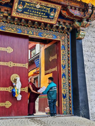 步行10分鐘,羅布多吉來(lái)到拉郊鄉(xiāng)政府,將《人民日?qǐng)?bào)》和郵件送達(dá)后,便驅(qū)車(chē)前往德瑪龍村。