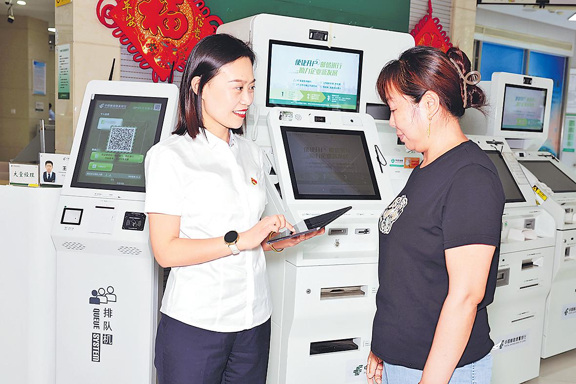 崔靜靜向客戶介紹信貸業(yè)務(wù)。