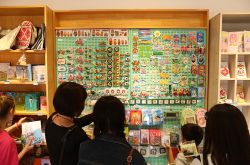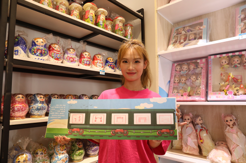 在俄式風(fēng)情拉滿的套娃主題郵局,采訪組一行看到了套娃形狀的郵筒、手繪套娃、套娃明信片、郵折、筆記本、冰箱貼等產(chǎn)品,這些產(chǎn)品吸引了很多小朋友的眼球。來(lái)自山東的中學(xué)生張同學(xué)對(duì)一款做工精美的套娃愛(ài)不釋手:“感覺(jué)來(lái)到這里就像到了俄羅斯,這里的套娃都太精美了,每一款都想要!”