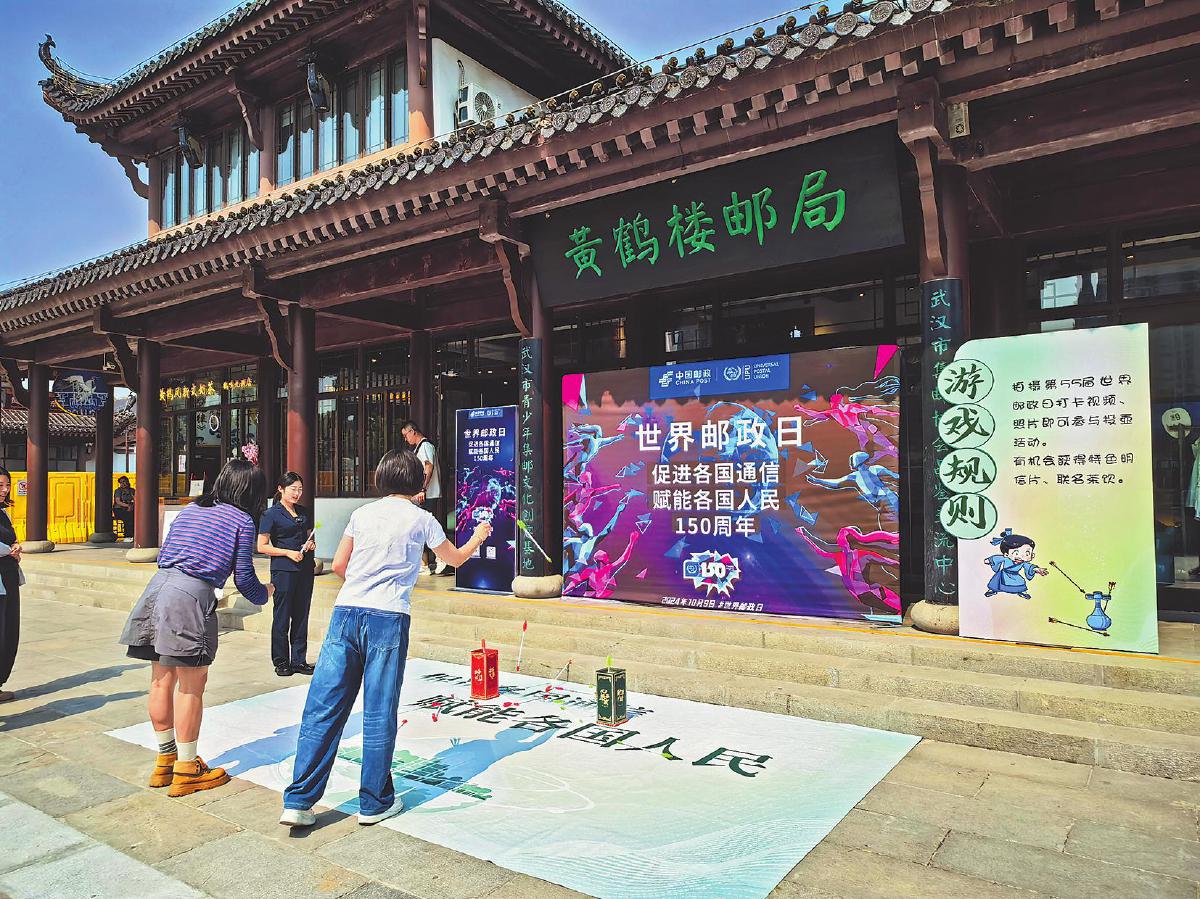 湖北省武漢市郵政分公司在黃鶴樓郵局、東湖高新政務中心以及全市各個郵政網點舉辦了形式多樣的世界郵政日主題宣傳活動。位于黃鶴樓景區東門的黃鶴樓郵局在世界郵政日當天開展了集戳打卡、趣味投壺、書畫展示等豐富多彩的活動,吸引了不少市民和游客參與。 □肖芳 陳娟 攝