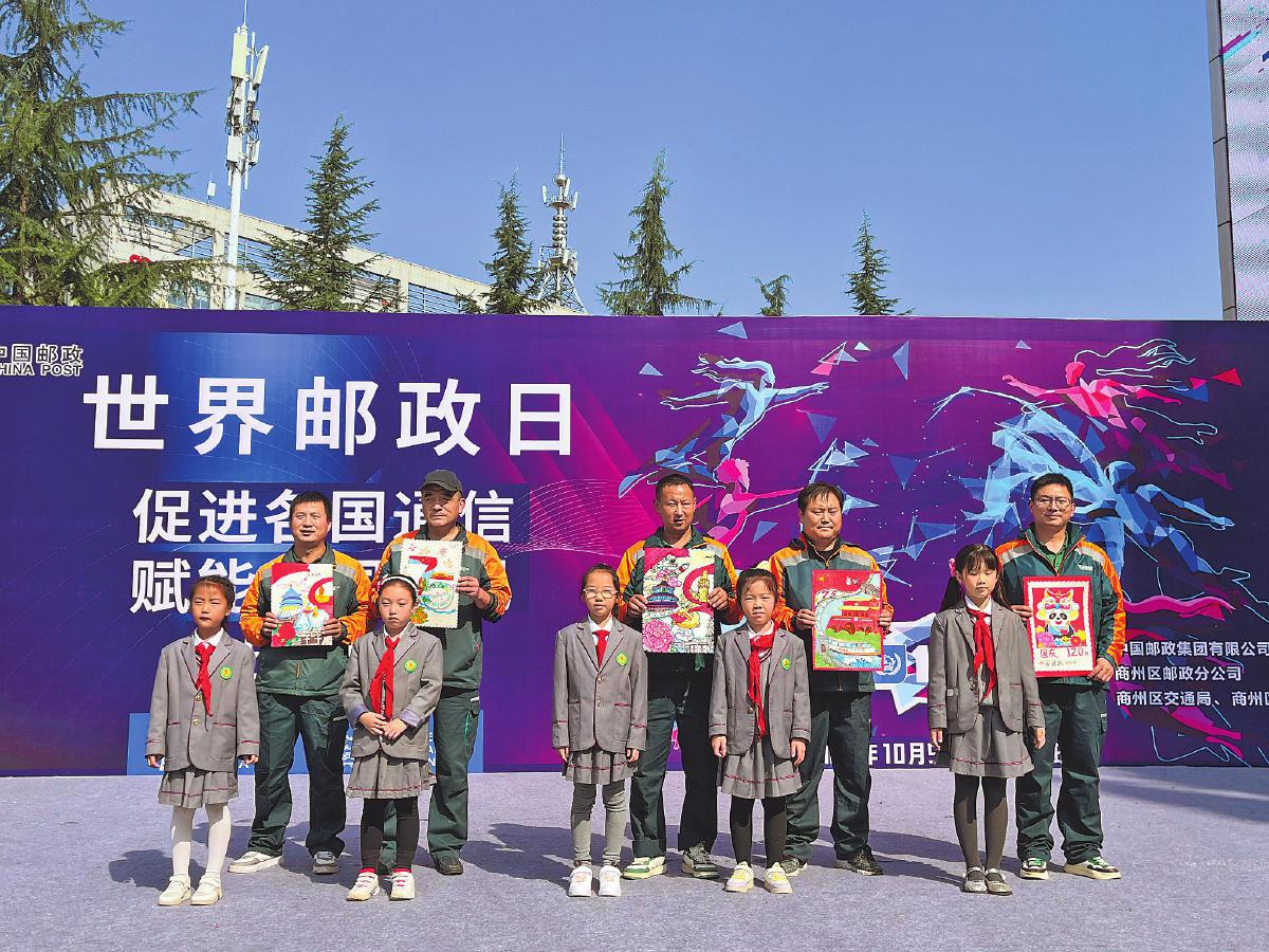 陜西省商洛市郵政分公司舉辦世界郵政日宣傳暨“童心同行 郵政相伴為美好生活加‘郵’”活動,來自商州區第六小學的5位小朋友現場為郵政快遞員送上了精美的手繪作品。 □張瀟 攝