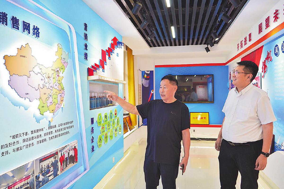 牛玉祥(左)與蘇伯寅回顧京陽立津線纜有限公司發展歷程。