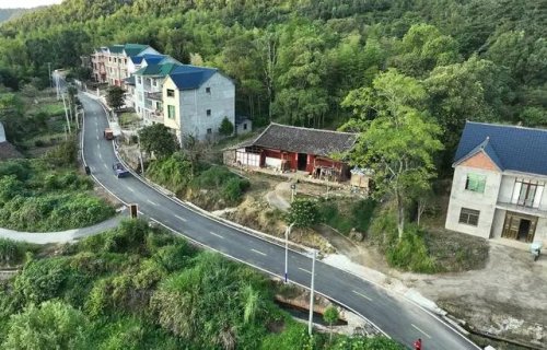 沿著盤山公路上行,汽車開進了沽溪村。群山環抱著整齊的新樓房,鮮花點綴在整潔的村道兩旁,村民在院子里晾曬收獲的稻谷。