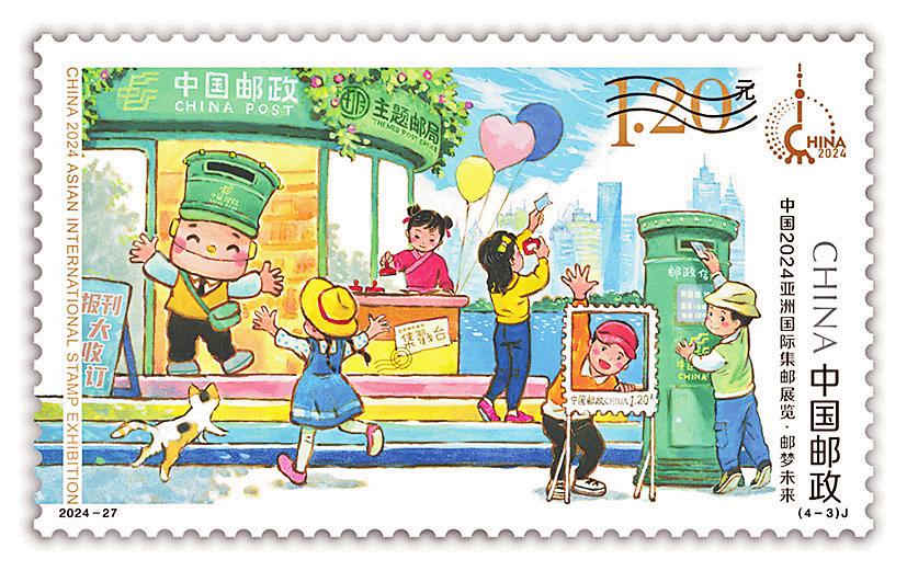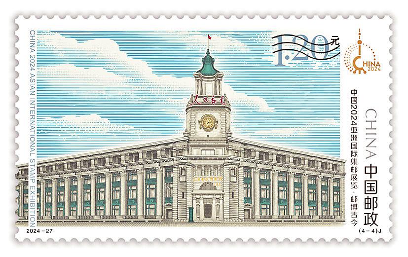 中國郵政定于2024年11月29日發行2024-27J《中國2024亞洲國際集郵展覽》紀念郵票一套4枚、小型張1枚。郵票名稱分別為“鼎啟新章”“滬韻流光”“郵夢未來”“郵博古今”,小型張名為“浦江朝暉”。郵票設計者分別為夏競秋、王晨、景紹宗、潘虎,小型張設計者為王虎鳴。