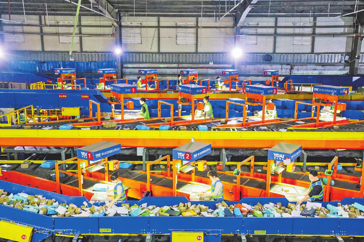 今年“雙11”期間,浙江溫州郵件高峰處理量是日常的1.32倍以上。夜幕下,溫州郵政婁橋分撥中心燈火通明,近100名員工開足馬力,利用高效自動化分揀設備處理郵件,生產(chǎn)現(xiàn)場忙碌而有序。10月22日至11月18日,婁橋分撥中心累計處理快遞郵件553.72萬件,日處理峰值達30.4萬件。
