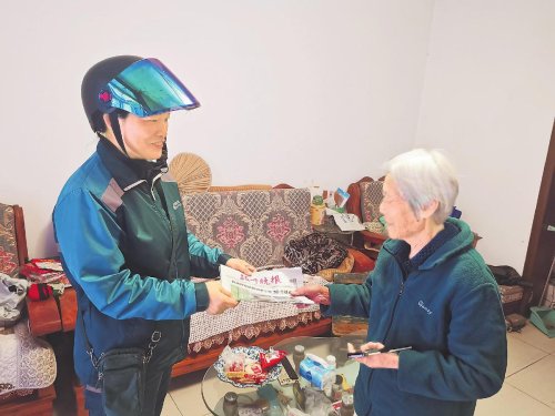 90多歲的賈同軒大爺是劉獻梅的客戶之一。自從老伴去世后,賈大爺經常一個人在家。有一次送報時,聽老人說身體特別不舒服,她當即叫來了出租車,把大爺送到醫院,并為其辦理了住院手續,然后通知其家人前來照顧。一切安排妥當之后,她才放心地繼續去投遞。“十幾年的相處,大家早就像親人一樣,很多老人都把我叫作閨女。我看到老人獨自生活就想幫上一把,希望他們能有一個溫暖的晚年。”劉獻梅說。