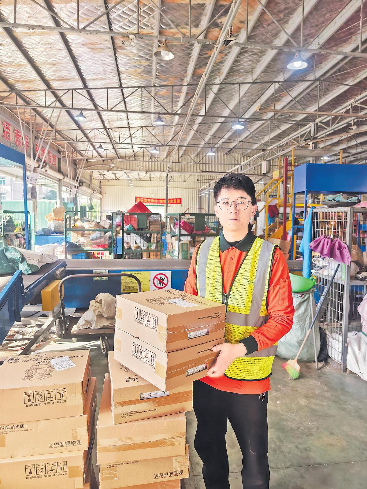 鄭龍凱幫客戶(hù)打包好即將寄遞的物品。