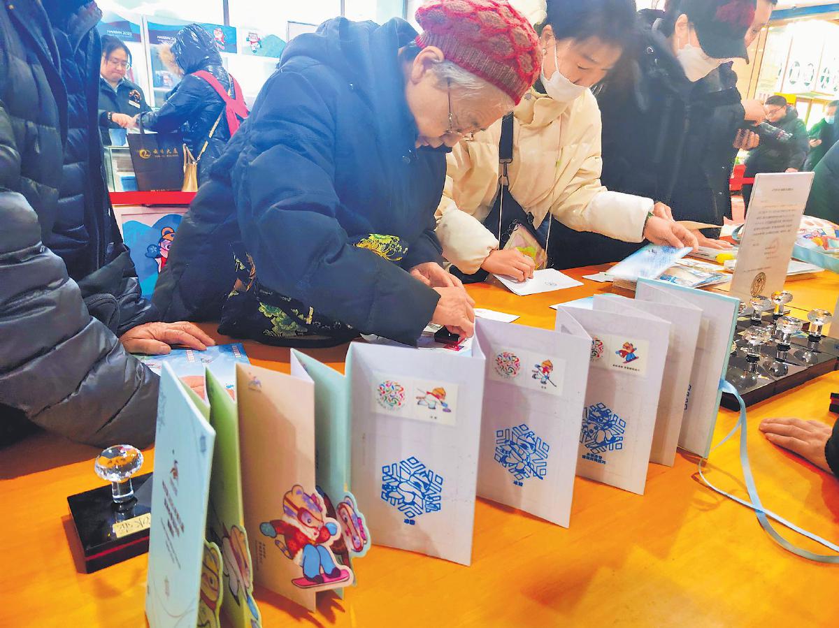 2月7日上午,《第九屆亞洲冬季運動會》紀念郵票首發儀式在黑龍江省哈爾濱市南崗區郵政營業大廳舉行,眾多郵迷趕來排隊購買亞冬會郵票和開幕式紀念封。圖為81歲的集郵愛好者姜奶奶來到營業廳追尋心儀的亞冬會郵票郵品。