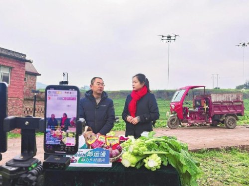 “這飛機還挺大。”“一架能裝多少?”循著周遭居民熱烈的議論聲抬頭望去:6架無人機接力飛行,將收砍的青菜頭從田間運送到路旁的郵車上。在這場涪陵片區(qū)郵政分公司與涪陵區(qū)農(nóng)委組織的“涪陵青菜頭新鮮到家”主題助農(nóng)惠民直播專場活動中,首次出動了無人機,通過“無人機運輸+網(wǎng)絡(luò)直播”,助力農(nóng)產(chǎn)品快速出村進城。