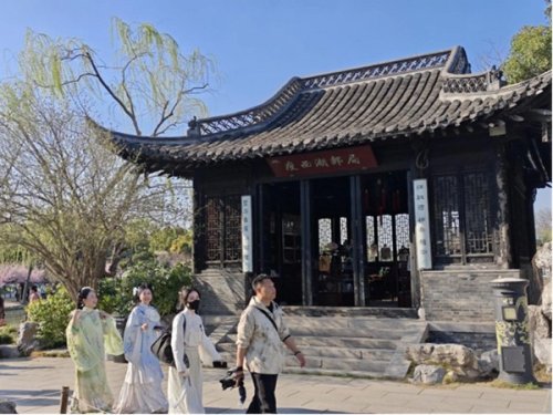 近日,一場別開生面的“春游瘦西湖”直播吸引了1300余名網友在線觀看。主播們身著漢服,漫步于揚州瘦西湖景區內的二十四橋、五亭橋間,娓娓道來揚州園林之美。