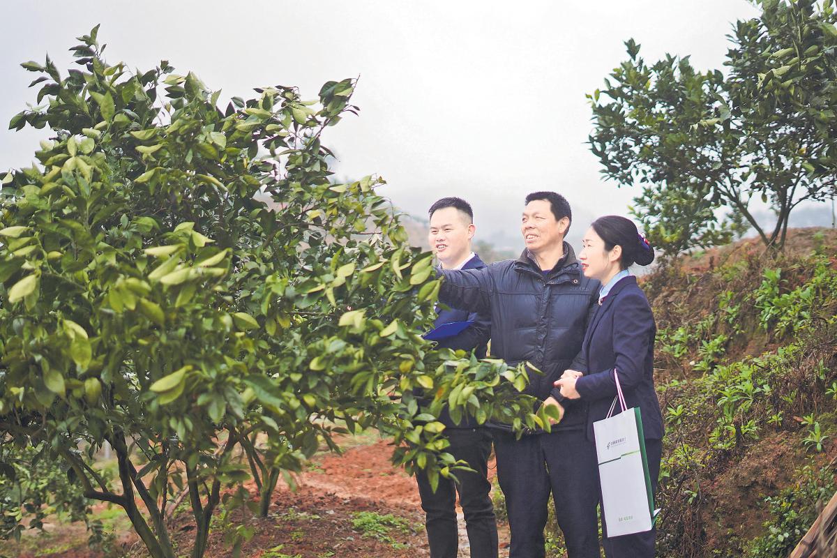 江西省分行信貸客戶經理實地了解臍橙種植大戶的資金需求。 □楊蘭 攝
