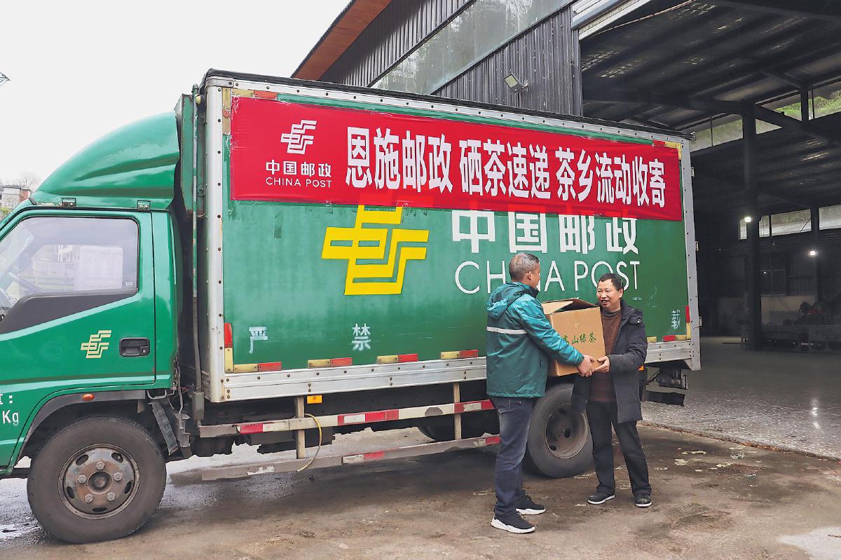 在恩施市芭蕉鎮的一家茶園里,采茶人指尖翻飛,嫩綠的芽尖簌簌落入竹簍。山腳的茶廠車間,20多名工人正忙碌地分裝炒好的茶葉。“硒茶速遞”項目組組長劉學章和同事麻利地驗視、打包、封裝、錄單,一箱箱茶葉將搭乘綠色郵車運往全國各地。恩施土家族苗族自治州郵政分公司創新構建派駐營銷體系,通過打造“懂茶、懂客、懂線”的專業營銷團隊,進駐茶市、茶廠,強化對散戶客戶的營銷開發,單日峰值收寄量突破500件。自“硒茶速遞”項目啟動以來,已實現寄遞收入32萬元,新增合作客戶18家,帶動郵儲授信120萬元,實現了從派駐團隊扎根一線到全產業鏈協同賦能的進階。