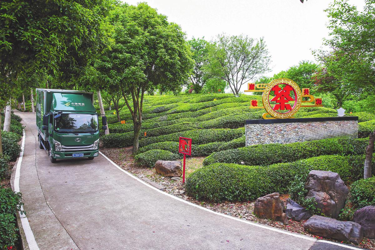 郵車駛?cè)搿班]樂農(nóng)品”黃山茶語基地。□徐雷 攝