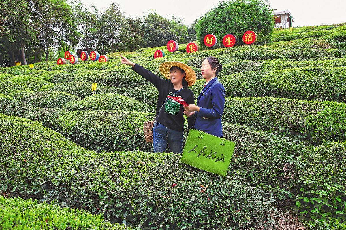 隨著新茶上市旺季的到來,茶農(nóng)們上春山、采春茶,歷經(jīng)采摘、殺青、揉捻、烘焙等過程,在“郵政綠”的專業(yè)服務(wù)支撐下,一片片嫩綠的茶葉實現(xiàn)蝶變。它們沿著郵政網(wǎng)絡(luò)在山野鄉(xiāng)村、喧囂都市間“流淌”,最終進入千家萬戶,化作一杯杯甘醇,沁人心脾。“郵政綠”托舉起鄉(xiāng)村振興的希望,將綠水青山真正轉(zhuǎn)化為金山銀山。