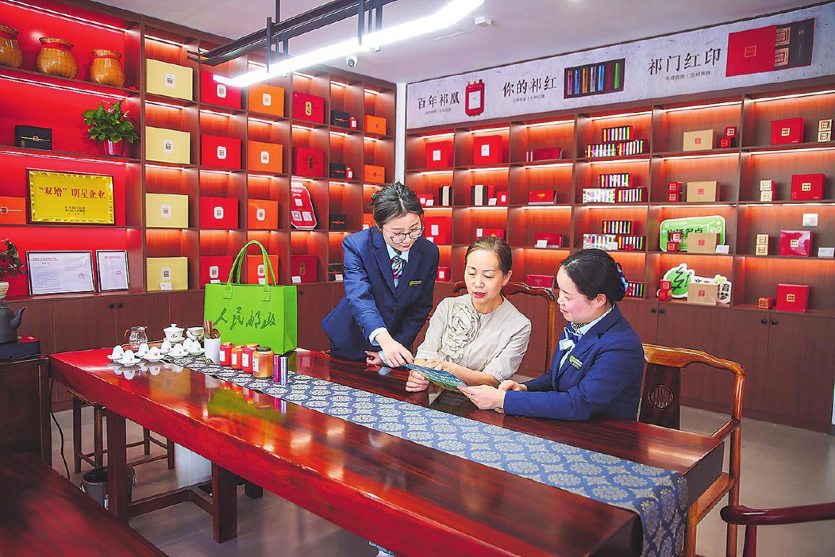 祁門縣郵政分公司員工開展祁門紅茶溯源直播。□徐雷 攝
