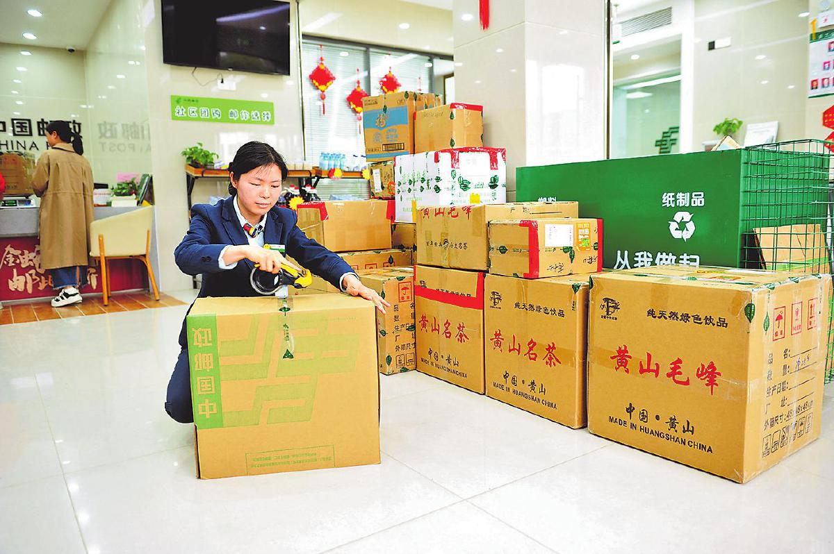 黃山市歙縣上豐郵政支局為茶農(nóng)提供徽茶散件收寄。 □王昌正 攝