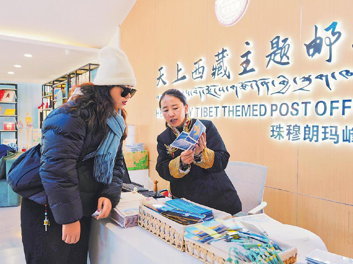 “想與珠峰相見,需要一些天時地利的運氣。所以,不論是幸福的還是帶著遺憾的游客,常常選擇在這里寄一枚明信片,讓大美珠峰成為永久的留念?!贝肽犯嬖V記者,珠峰郵局每天的營業時間是9∶30—19∶30。但由于想寄信留念的游客太多了,自己通常會延長營業時間,盡力服務好每一位遠道而來的客人。暑期旺季,措姆一天最多能收寄2000多件信件,經常忙到深夜12點才回宿舍休息?!按肽纷鍪绿嵳J真,她堅守在郵局,為珠峰旅游發展作出了很大貢獻。”在定日縣文旅局副局長高陽平看來,措姆就像盛開在高原的格?;ǎ瑲v經風雪卻屹立不倒。
