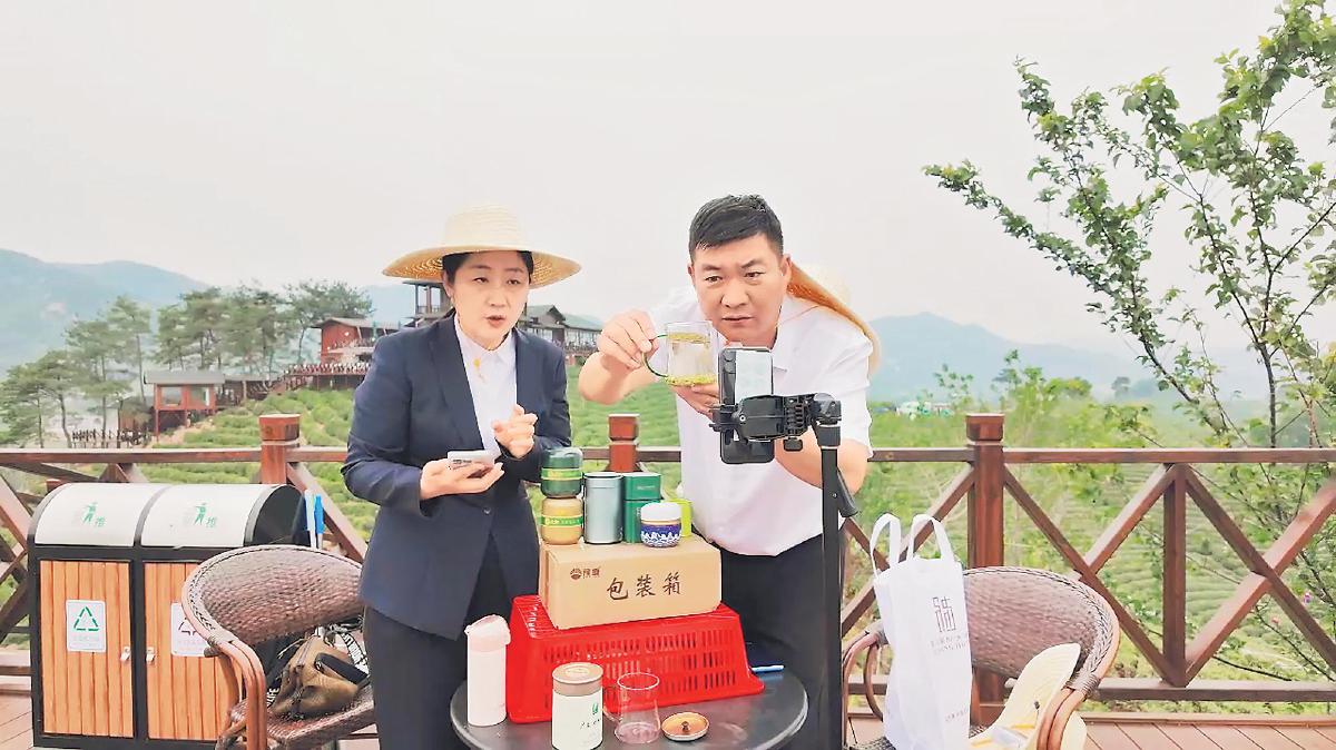 河南郵政直播團(tuán)隊進(jìn)行信陽毛尖全省聯(lián)動直播。 □圖片由信陽郵政提供