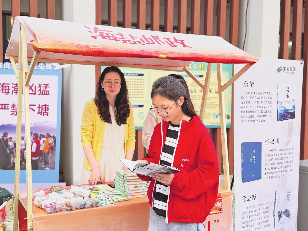 第二重體驗是用文學盲盒翻開嘉興的“密碼”。攤位上,“一本知嘉興”主題書展掀起搶購熱潮。一冊冊書籍整齊排列,工作人員化身“文學講解員”,現場演繹《活著》這本書中“福貴看日出”的經典段落:“我知道黃昏正在轉瞬即逝,黑夜從天而降了,但此刻,我們的黑夜正被曙光刺破!”聲情并茂的朗誦讓許多游客眼眶濕潤。
