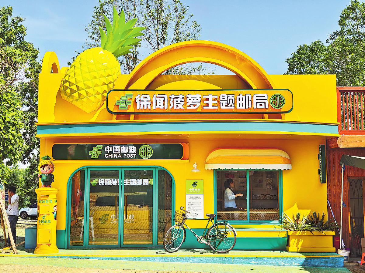 湛江市分公司積極融入當地文旅產業,打造了徐聞菠蘿主題郵局。在今年“五一”假期試營業期間,該主題郵局迅速成為游客打卡的網紅之地。主題郵局的外觀以清新的黃色為基調,輔以可愛的菠蘿卡通形象,鮮艷的色彩讓人眼前一亮。走進主題郵局,一股濃郁的菠蘿氣息撲面而來,墻上裝飾有郵件圖案,貨架上陳列著眾多帶有菠蘿元素的明信片和郵政文創產品,深受游客喜愛?!拔逡弧奔倨?,徐聞菠蘿主題郵局訪客累計超過3000人次,成為宣傳徐聞菠蘿的一張新名片。