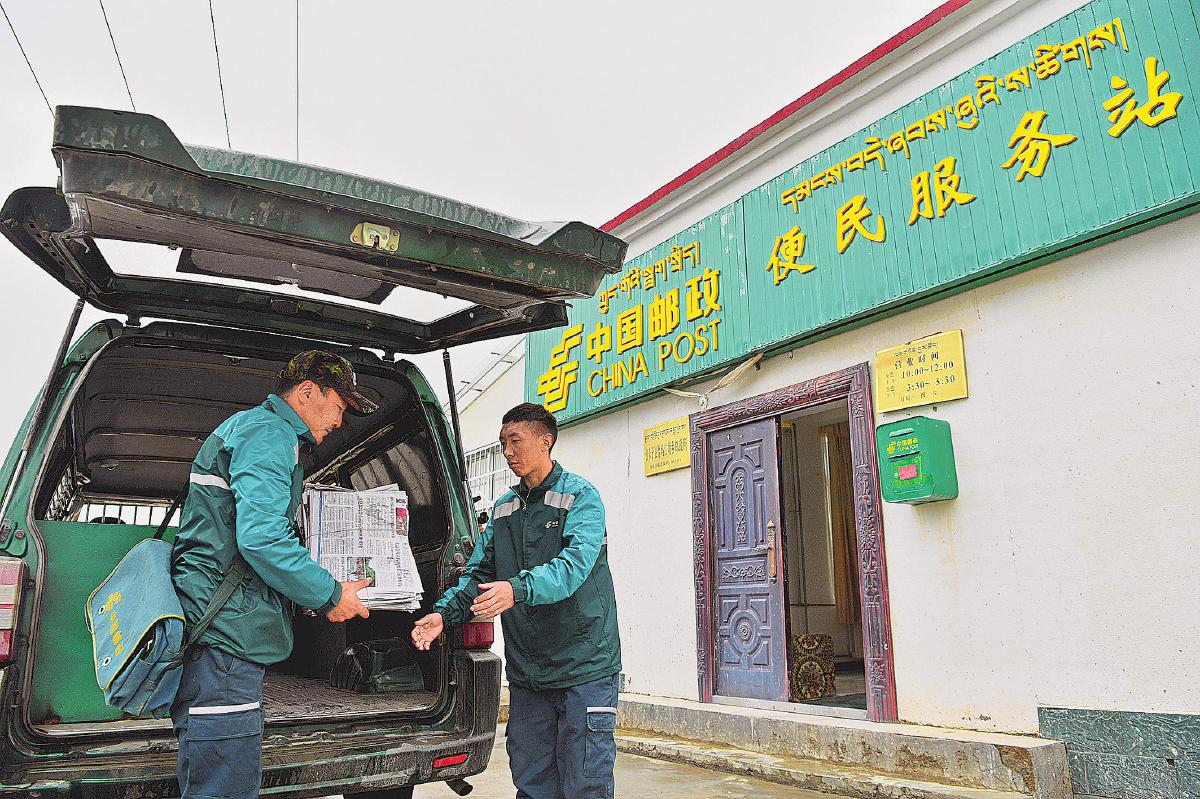 西藏郵政將黨報黨刊投送至全國海拔最高的鄉——普瑪江塘鄉。□藏由 攝