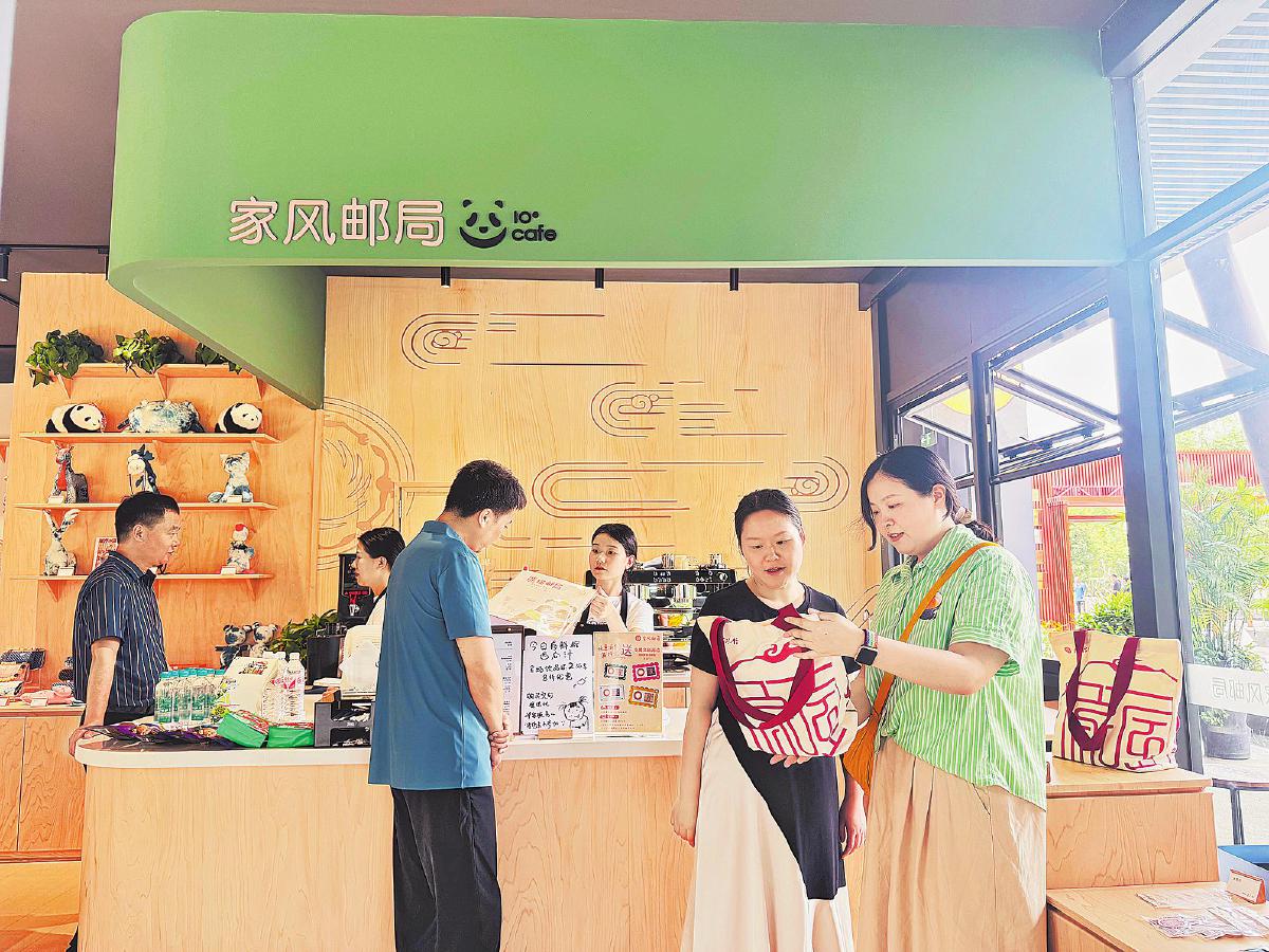 70多平方米的郵局空間內,設有集郵文創產品展示、休閑社交、文化書信傳遞三大功能分區。在這里,游客不僅能選購集郵文創產品、品嘗香醇咖啡,還能聆聽家風故事、打印一枚屬于自己的家風明信片。通過喜馬拉雅有聲閱讀功能,“郵政+聲音+科技”的跨界體驗讓家風故事更加生動有趣。有聲明信片打印、熊貓家風郵局集章打卡更是游客們最喜歡參與的環節,通過“一枚可創作的明信片”與“一枚可集的章”,家風文化變成可參與、可收藏的情感符號,讓游客真正感受到“蓋下的是印章,留存的是家風”。