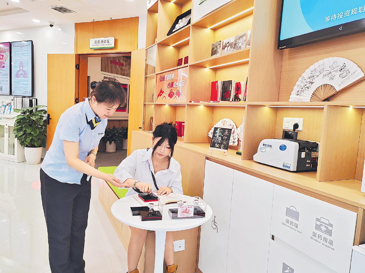作為重慶分行特色化轉型的標桿網點,該支行與渝中區化龍橋街道深度合作,共建“紅金渝·化龍橋金融網格驛站”,將現有“郵愛驛站”升級為多功能綜合服務樞紐。一方面,為環衛工人、快遞員等戶外勞動者提供飲水、充電等40項便民服務,打造溫暖的“歇腳地”;另一方面,集成金融政策宣導、金融知識普及、金融糾紛調解等功能,成為“紅金渝”金融黨建品牌在社區治理中的生動實踐。
