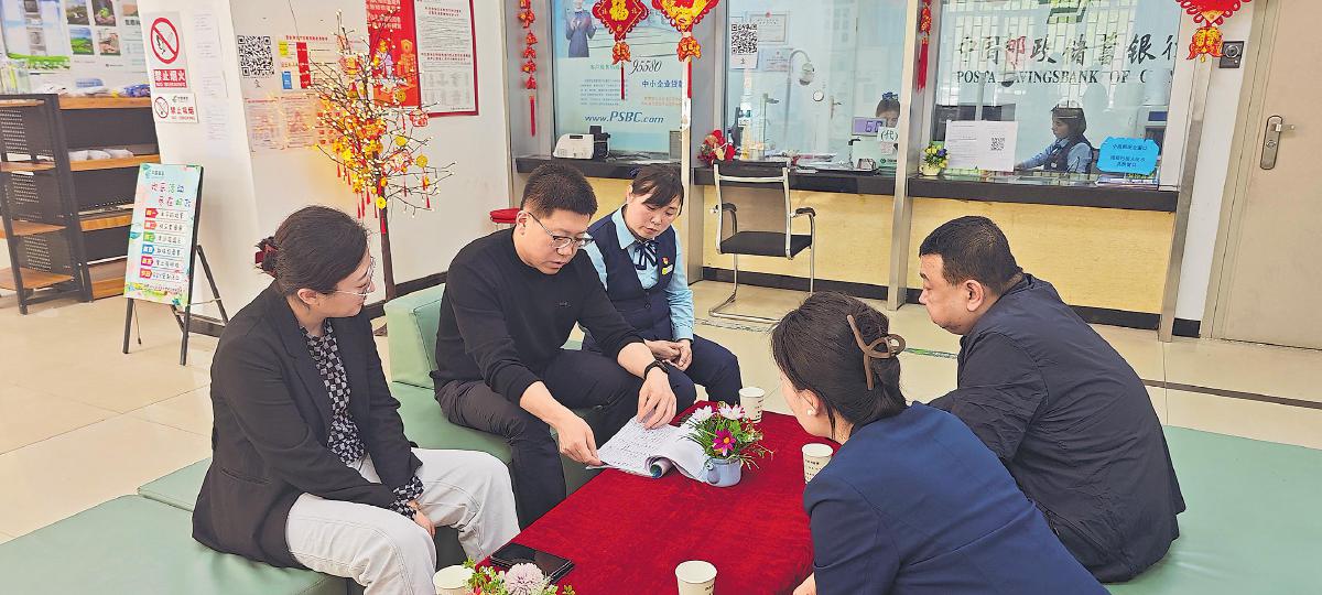 張育琪(左二)在基層網(wǎng)點調研指導工作。