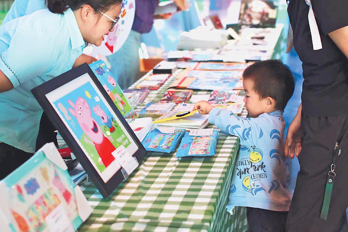 《小豬佩奇》郵票發(fā)售活動吸引親子家庭參與。 □楊承峻 攝