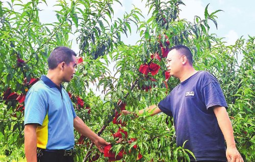郵政工作人員走訪果農,了解銷售寄遞需求。 □錢躍輝 攝