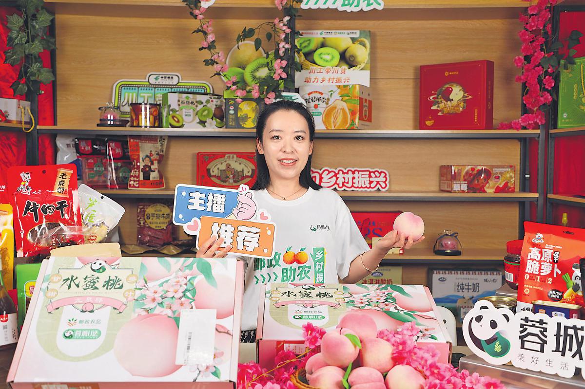“龍泉水蜜桃汁水豐沛、口感香甜,每一口都像在品嘗夏天!”6月20日,在龍泉驛區(qū)農業(yè)農村局與山泉鎮(zhèn)政府聯(lián)合主辦的特色農產品展銷活動中,郵政員工布展搭景,通過直播推銷龍泉水蜜桃,引來果農的圍觀,同時也收獲了大量網(wǎng)友的點贊與訂單。自水蜜桃大量上市以來,成都郵政加大助銷力度,頻繁參與展銷推介會,為龍泉水蜜桃傾情代言、直播帶貨。