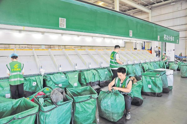 陜西省郵政分公司日前啟用移動分揀(車)平臺設備,用于支撐快手集運、農(nóng)產(chǎn)品寄遞等重點項目發(fā)展,體現(xiàn)了“整體移動便捷、安裝搭建高效、快速形成生產(chǎn)力”的優(yōu)勢。該設備主要由車廂體和分揀系統(tǒng)組成,分揀系統(tǒng)由供件皮帶機、直線窄帶分揀機、格口滑槽、掃碼設備等部分組成,并自帶發(fā)電機與無線通信網(wǎng)絡設備,可適應生產(chǎn)場地短期缺乏電源及專線通信網(wǎng)絡條件時使用,每小時可處理郵件6000件以上。
