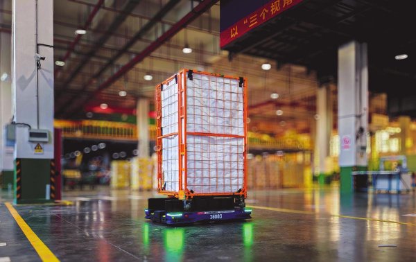 AGV智能分揀機(jī)器人在分揀快遞郵件。