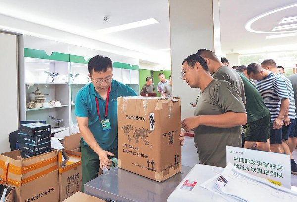 郵政工作人員為官兵收寄包裹,確保當日收寄、當日出口。
