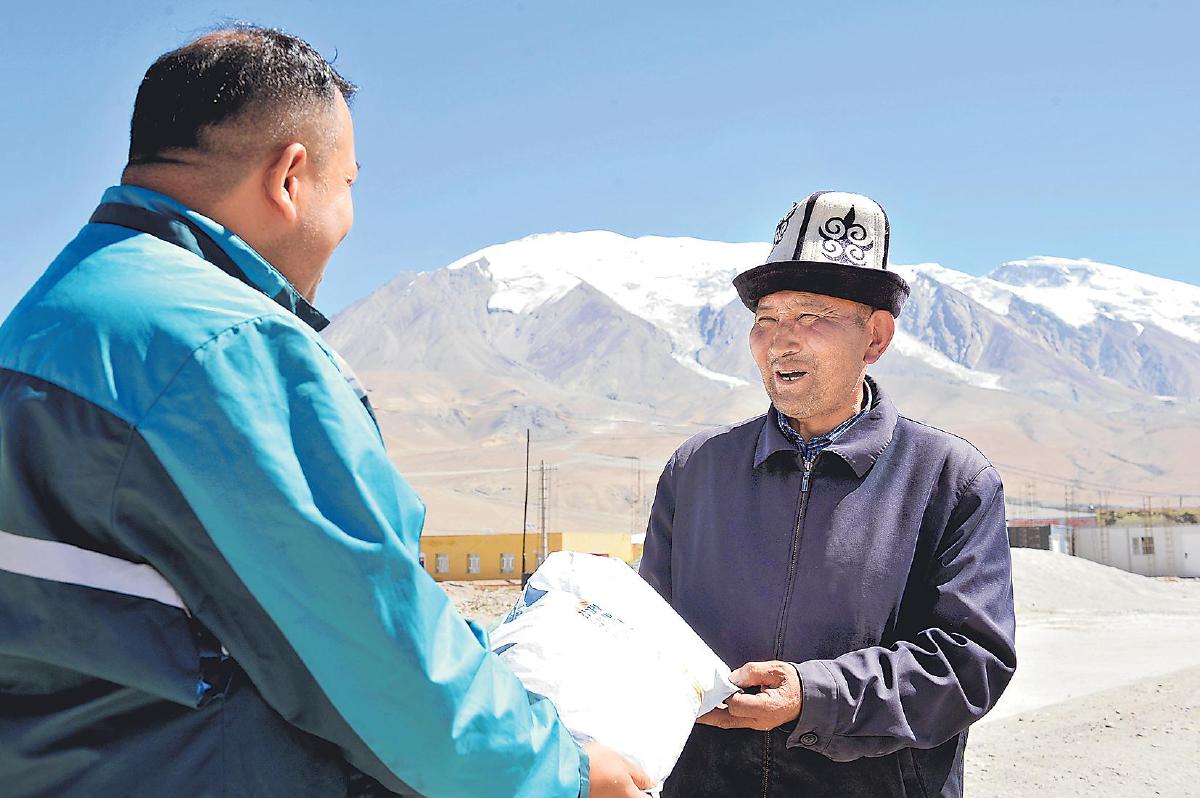 阿克陶縣郵政分公司投遞員阿不都賽米·賽買提為當(dāng)?shù)卮迕袼桶祥T。