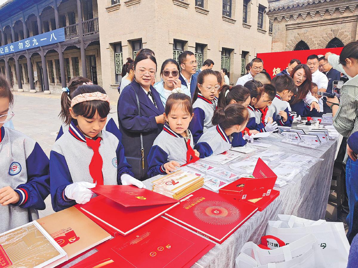 在紀(jì)念館現(xiàn)場,太原市杏花嶺區(qū)分公司臨時(shí)創(chuàng)新設(shè)立的“九一八”紅色主題郵局,以郵政文化為載體,打造可感知、可參與、可珍藏的愛國主義教育新體驗(yàn)。該分公司特別推出4枚專題紀(jì)念章,借助國民師范風(fēng)景日戳首發(fā),通過蓋戳打卡體驗(yàn)、紅色郵票展覽、互動(dòng)交流分享等形式,弘揚(yáng)偉大抗戰(zhàn)精神,強(qiáng)化愛國主義教育。