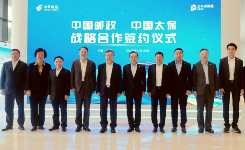 11月5日,在第八屆中國國際進口博覽會開幕之際,中國郵政集團有限公司與中國太平洋保險(集團)股份有限公司(以下簡稱“中國太保”)在上海續簽戰略合作協議。