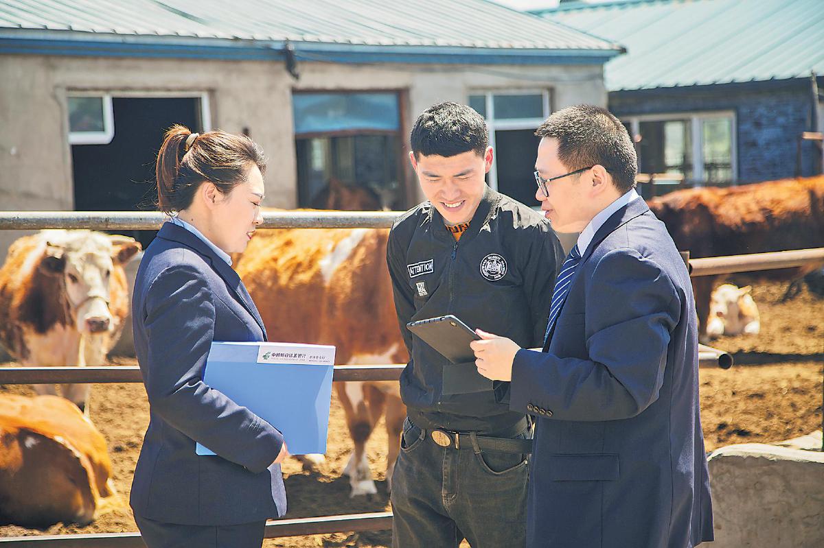 黑龍江省分行員工上門為肉牛養(yǎng)殖戶量身定制金融服務方案。