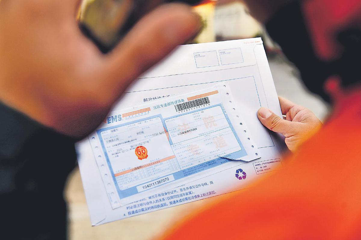 沂源縣郵政分公司投遞員在投遞司法文書前聯(lián)系收件人。