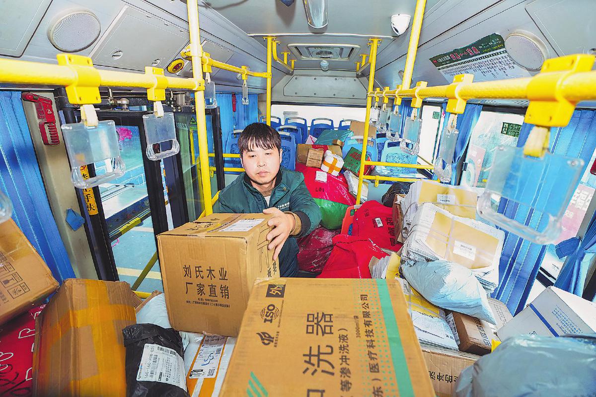 說話間,一輛懸掛著“交郵合作”標志的公交車緩緩停靠在店門口。司機張師傅與關亞杰一起熟練地裝卸郵件上下車。“以前跑這趟線,空駛率高,公司運營壓力大。現在既能拉乘客,又能運快遞,我們的收入也多了點,一舉兩得!”張師傅笑著說。