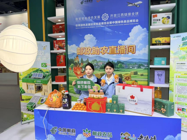 近日,2025世界綠色發展投資貿易博覽會暨中國綠色食品博覽會在南昌開幕。中國郵政集團有限公司南昌市分公司攜無人機、無人車等智慧物流裝備,以及贛南臍橙、富硒紫紅米、老俵情山泉水等十余種本土優質農產品參展。